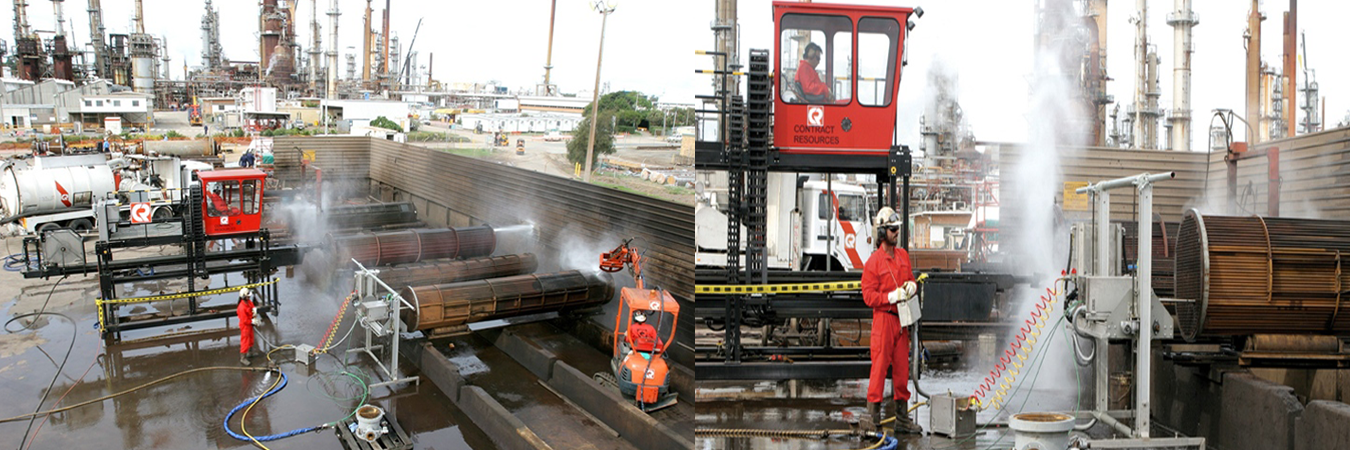 SM hydro blasting provides high pressure water jetting for tasks such as hydrodemolition, tank cleaning, tube cleaning, tube replacement, pipe cleaning and ACC fin cooler cleaning.